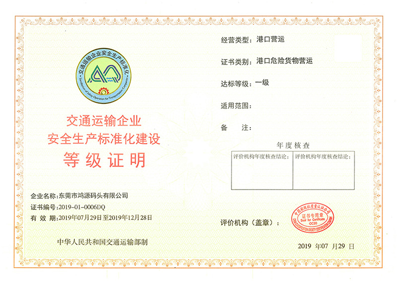 日前,巨正源所屬盛源石化、鴻源碼頭正式獲得由國家交通運(yùn)輸部頒發(fā)的“交通運(yùn)輸企業(yè)安全生產(chǎn)標(biāo)準(zhǔn)化建設(shè)一級達(dá)標(biāo)企業(yè)證書”,這標(biāo)志著盛源石化、鴻源碼頭安全生產(chǎn)管理邁上標(biāo)準(zhǔn)化、規(guī)范化的新臺階。