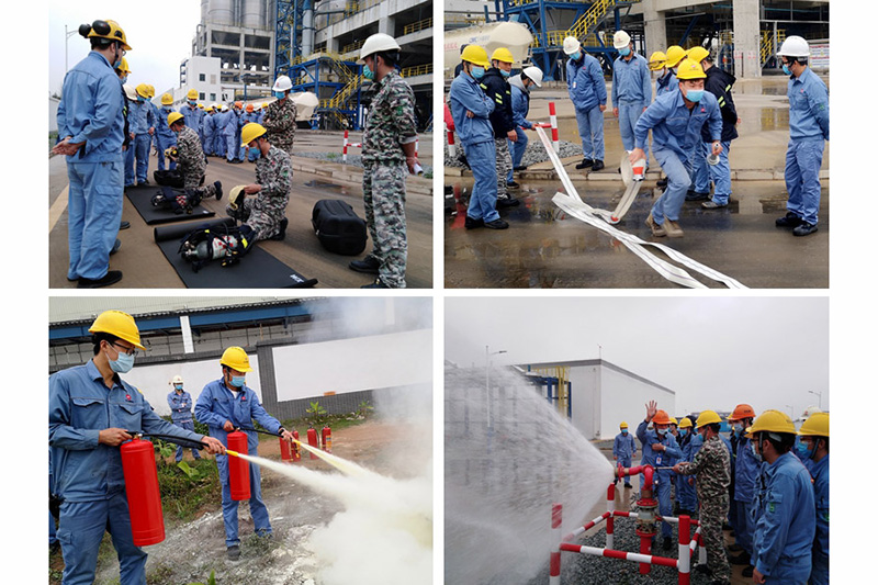 此次培訓安全理論知識與現(xiàn)場實際操作相結合,包括公司消防設施配備與分布、干粉滅火器的使用和日常檢查方法、消防水帶的使用方法、消防炮的使用方法以及空氣呼吸器的佩戴方式等內(nèi)容。