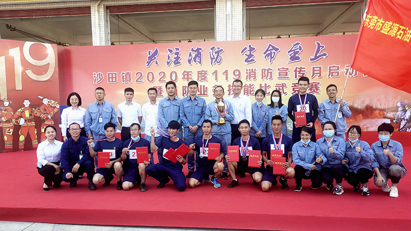 沙場秋點兵,群英大比武。11月9日,“關注消防、生命至上”——沙田鎮2020年度119消防安全宣傳月活動啟動儀式暨消防業務技能比武競賽在濱海灣新區消防大隊隆重舉行。來自轄區內的23家安全重點企業參加了比武競賽。巨正源旗下盛源石化、科技公司組織消防隊伍參加競賽,分別榮獲團隊一等獎、二等獎,并在多個項目中取得了優異的成績。